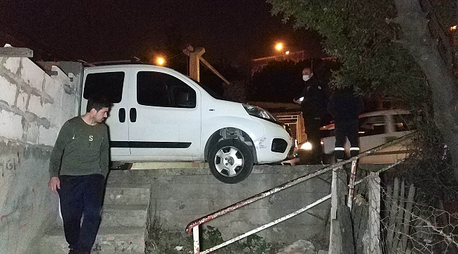 Yoldan çıkan araç kaldırıma çıktı