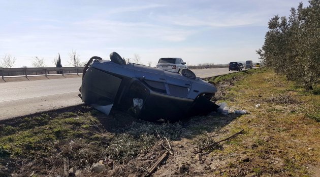 Bursa-İzmir yolunda seyreden otomobil direksiyon hakimiyetini kaybederek zeytinliğe uçtu. Kazada 1 kişi yaralandı.