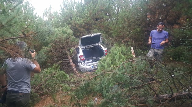 Yoldan çıkan otomobil ağaçların arasına daldı