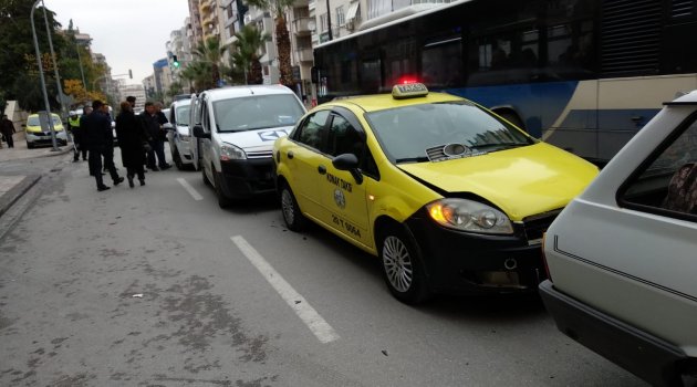 Denizli’de yolun karşısına geçmeye çalışan yaya zincirleme kaza yapan araçların arasında sıkıştı. 4 aracın karıştığı kazada yaralanan kadın hastaneye kaldırıldı.