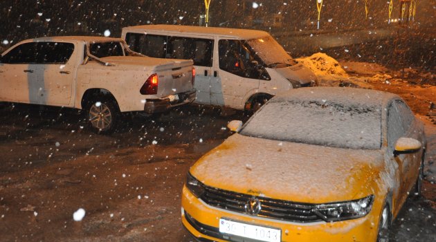 İlçede günlerdir aralıklı yağan yağmurdan sonra akşam saatlerinde etkili olan kar yağışı vatandaşı şaşırttı.