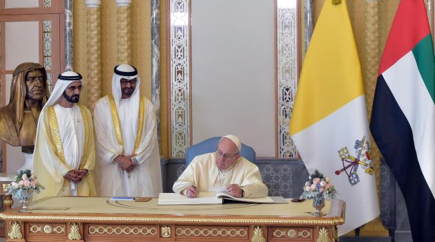 Yazar Malbrunot, BAE’nin Batı ile, dinlerarası diyalog gibi bazı değerleri paylaşır gibi göründüğünü de belirterek, El Ezher Şeyhinin Papa’nın ziyaretinde hazır bulunmasının bir tesadüf olmadığını, çünkü, Abu Dabi’nin Abdulfettah Sisi yönetimi altındaki Mısır’a, Müslüman Kardeşlerle mücadelesine mali destek de sağladığını belirtti.