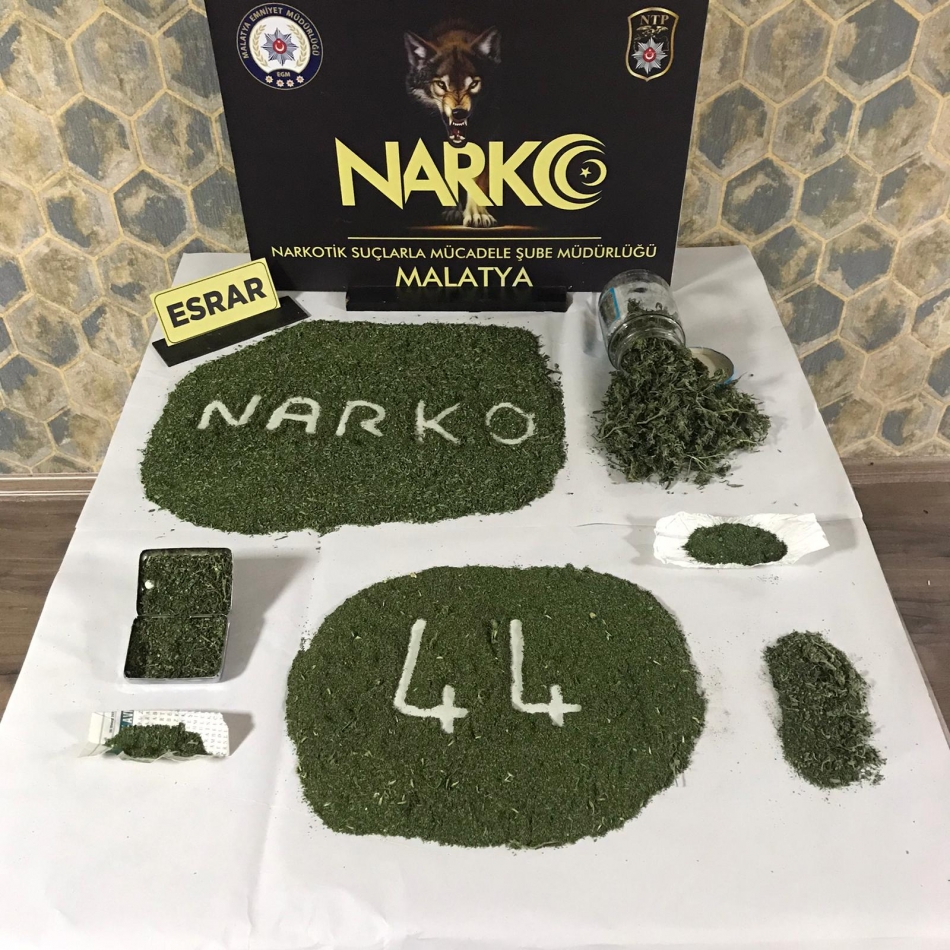 Battalgazi ilçesine bağlı Taştepe Mahallesi Mürit Sokak'ta yapılan çalışma sonucu Ö.Ö. isimli alıcı şahıstan 19 gram esrar maddesi ele geçirildi.
