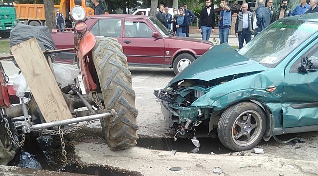 Zincirleme kazada traktör ikiye bölündü