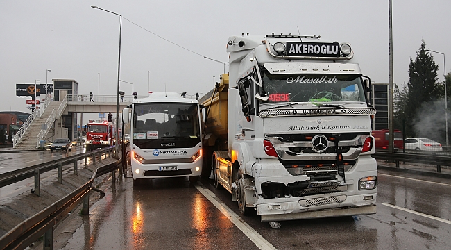 Kaza, Kocaeli’nin Başiskele ilçesi D100 karayolunda meydana geldi. Edinilen bilgilere göre, Ankara istikametinde seyir halinde olan sürücüsü öğrenilemeyen 41 SN 007 plakalı hafriyat kamyonu, yavaşlayan 41 NT 922 plakalı midibüse arkadan çarptı. Aynı istikamette seyir halinde olan 41PN 003 plakalı Volkswagen marka hafif ticari araç, 06 BVA 096 plakalı tır ve 41 P 4315 plakalı midibüs de duramayarak kaza yapan araçlara çarptı.