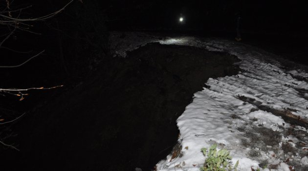 Zonguldak'ta etkili olan yağmurun yolun altındaki yamaçta heyelan meydana geldi. Çöken yol bir evin duvarına kaydı.